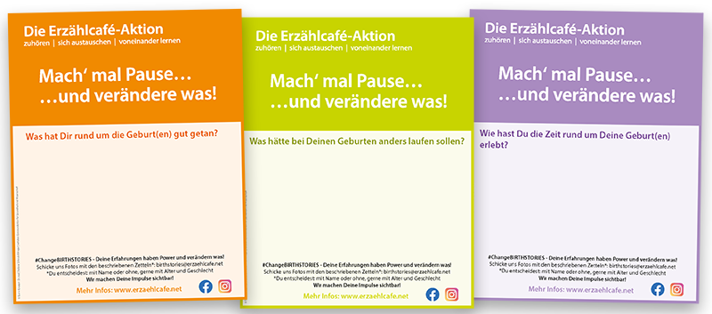 +++ Sei dabei: Bundesweiter Aktionstag "Mach' mal Pause...und verändere was! Mit Erzählcafés rund um den 5. Mai 2026, Internationaler Tag der Hebamme +++ Erfolgreiche Schulung für Hebammen uund Interessierte über geringe Literalität in der Geburtshilfe +++ Kontakt mit MüttermachtPolitik +++ Neu: Sterncafés in Essen +++ Nachlesen und sich inspirieren lassen: Jubiläumsdokumentation "10 Jahre Erzählcafé-Aktion" +++ Gedruckte Väterflyer zur Geburtsvorbereitung wieder bestellbar!