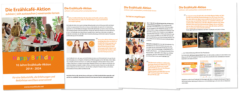 Seit 2014 finden überall in Deutschland, in der Schweiz und in Österreich viele berührende Erzählcafés mit unterschiedlichen Zielgruppen statt. Die dort erzählten Geburtsgeschichten, Wünsche und Erfahrungen rund um Schwangerschaft und Geburt haben wir zum Nachlesen und Weiterdenken dokumentiert.