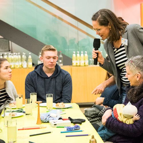 Eine 80jährige Frau saß zusammen mit einer Schwangeren am Cafétisch. Gemeinsam mit den Jugendlichen überlegten beide, was sich von früher bis heute geändert hat oder gleich geblieben ist. Eine wichtige Botschaft für die Jugendlichen war, dass man auch über Erlebnisse reden kann, die nicht so gut waren. Sie lernten, wie hilfreich das Verarbeiten von negativen Geburtserfahrungen für die nächste Generation in der Familie ist.